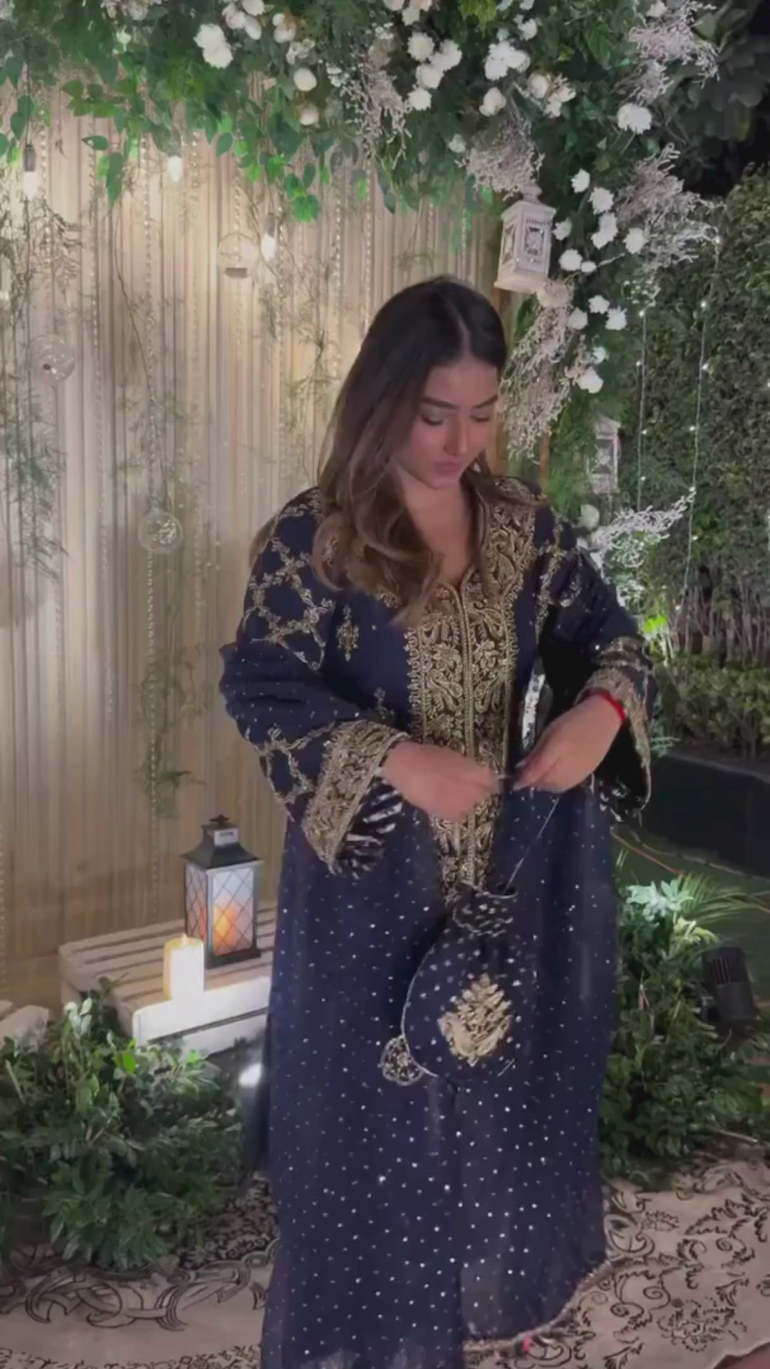 Premium Ready-Made Anarkali Gown Sharara Suit Set with Embroidery and Sequins Work (3 Piece Set)
