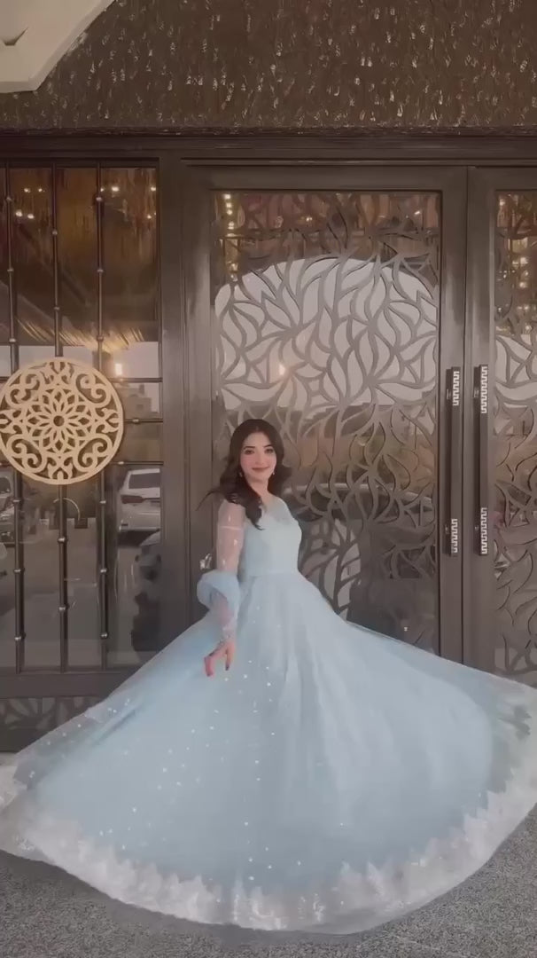 Zyra Elegant Embroidered Georgette Gown Set with Detailed Organza Cutwork Dupatta