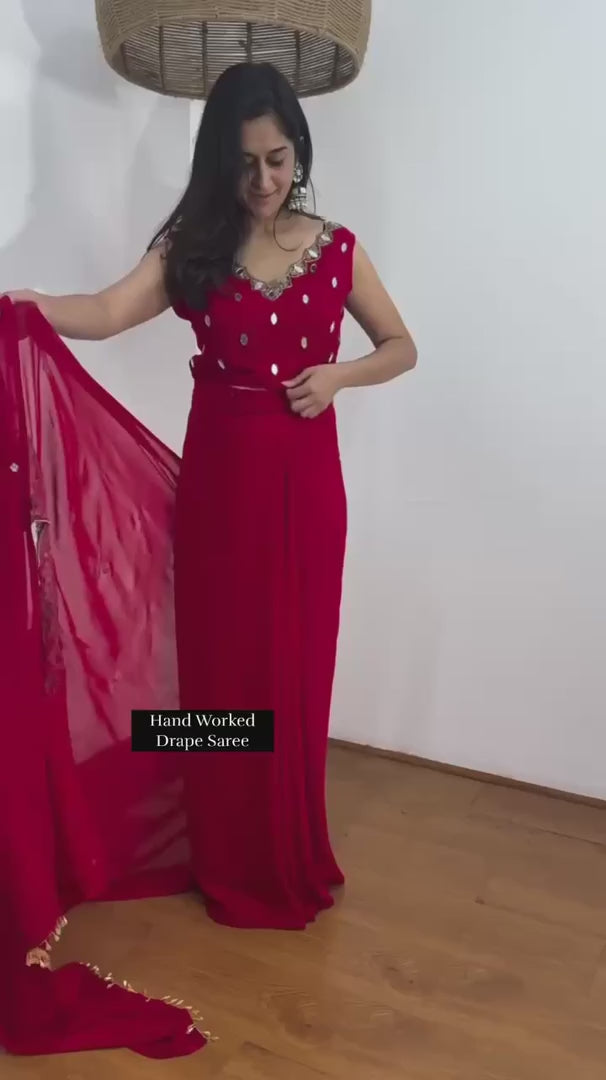 Modern Ready-to-Drape Saree with Embellished Blouse Design