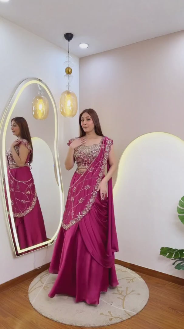 Crep Silk Embroidered Lehenga Saree Set