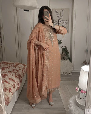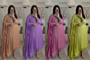 WORK : Sequins & Zari Embroidery Work with Fancy Lace on Borders.