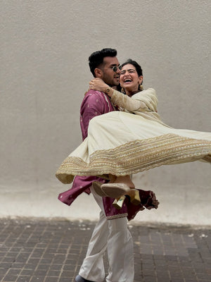 Set Includes: Gown, Koti, Pant, Dupatta