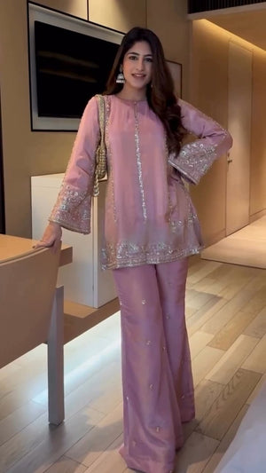 Designer Chinon Silk Sequins Embroidery Top with Palazzo