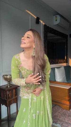 Presenting the new designer collection in pure heavy faux georgette with heavy embroidery sequence work. Fully stitched top, bottom and dupatta set, ready to wear.