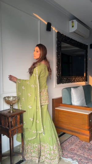 Designer Faux Georgette Top, Sharara and Dupatta Set with Heavy Embroidery Sequence Work