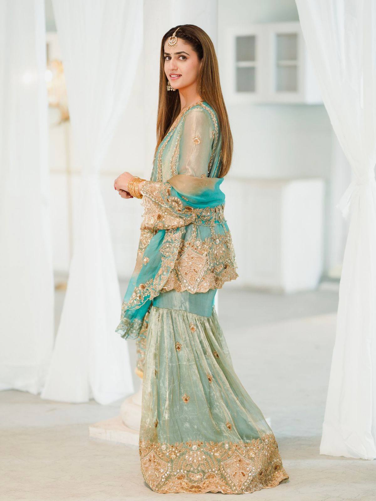Package Includes: Fully stitched kurti, sharara, and dupatta