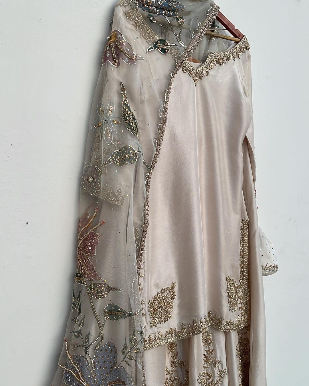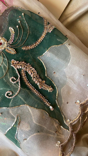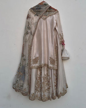 Satin Silk With intricate hand Embroidery and cut daana work