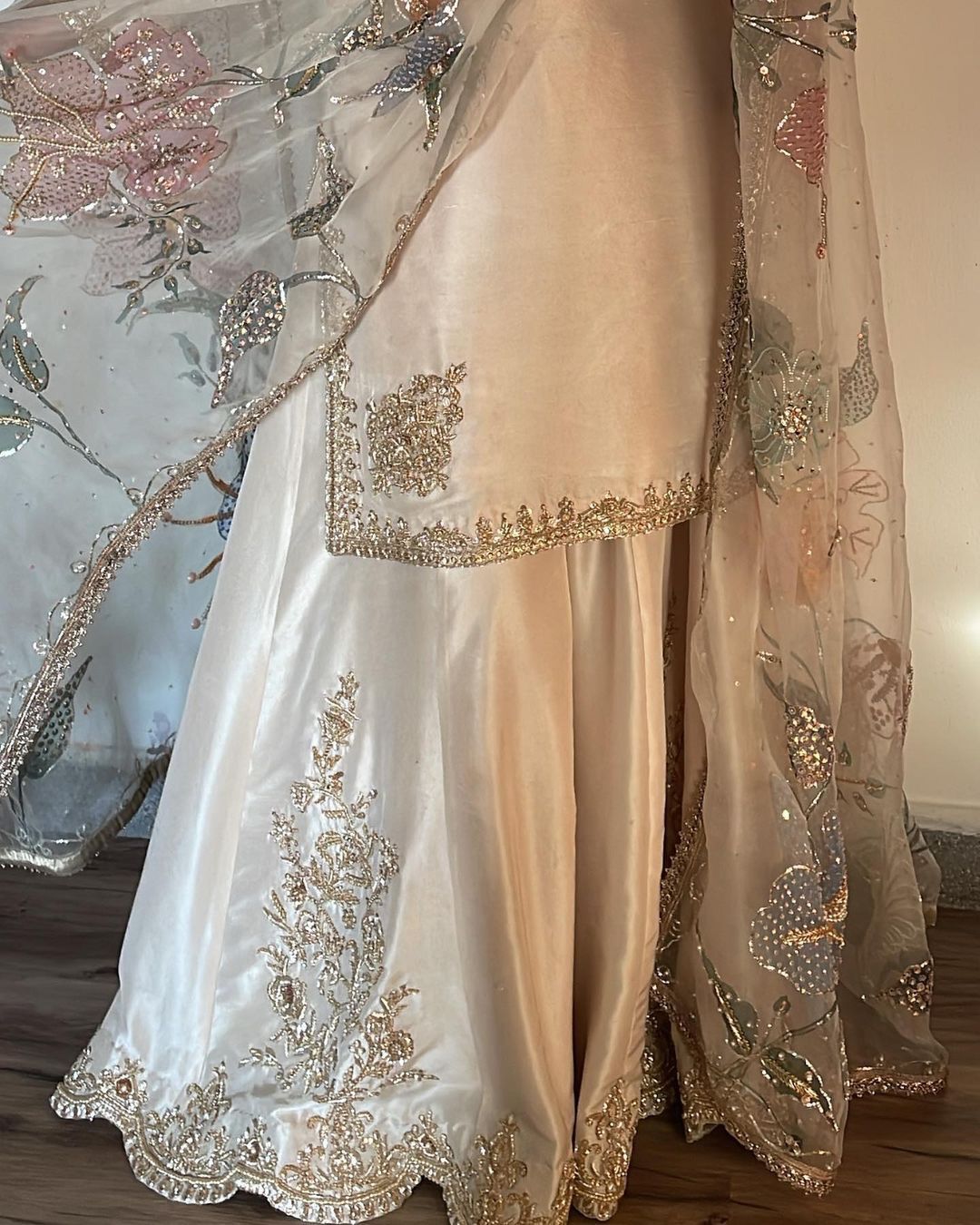 Fully Stitched and Fully Flared Sharara with zardosi and cut daana