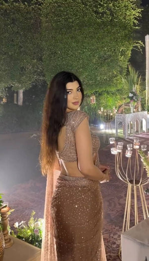 Shop this premium butterfly net saree with silk inner and embroidered sequins blouse piece. Perfect for weddings, parties, and festive celebrations.
